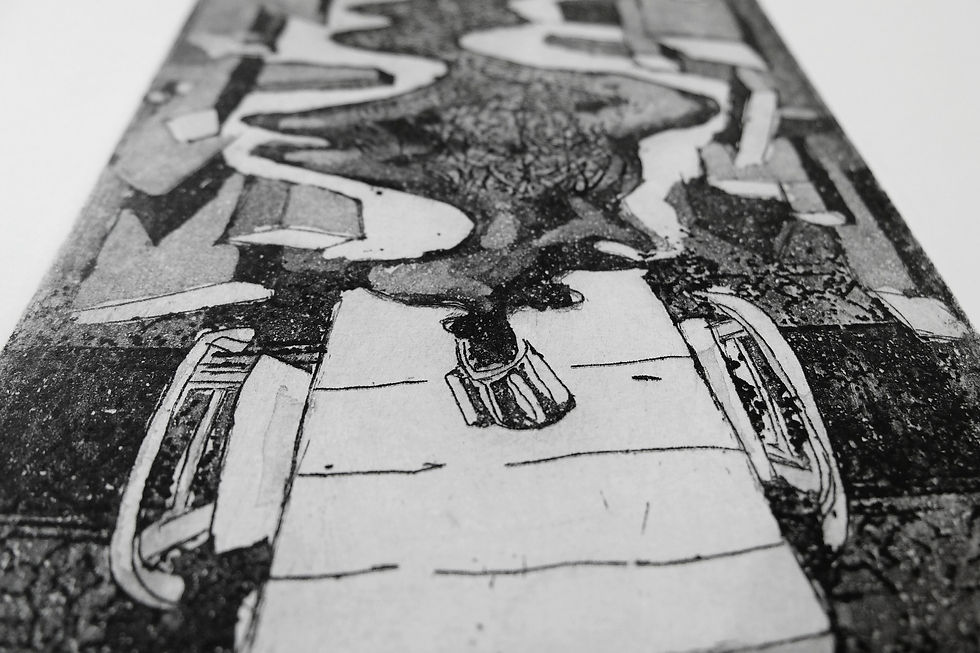 Técnica Combinada (agua fuerte, aguatinta y marmolado s/hojalata)